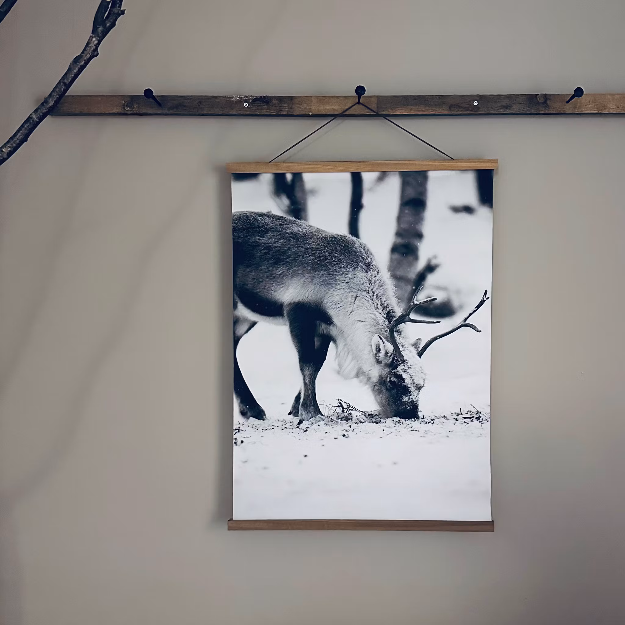Canvasposters med hänganordning i trä och djurmotiv i svartvitt ett stilrent och mångsidigt val för modern inredning. De kombinerar tidlös design med naturens skönhet, vilket gör dem till en populär inredningsdetalj.