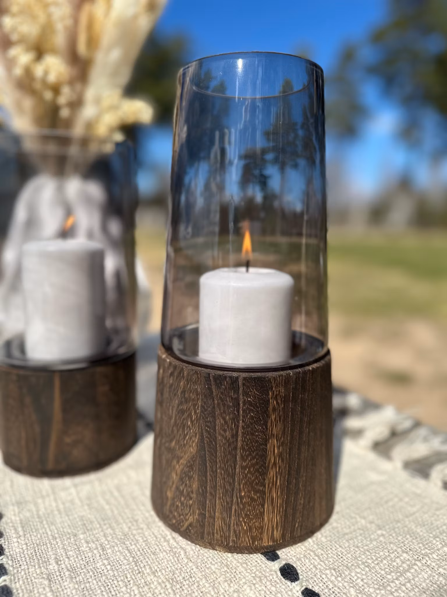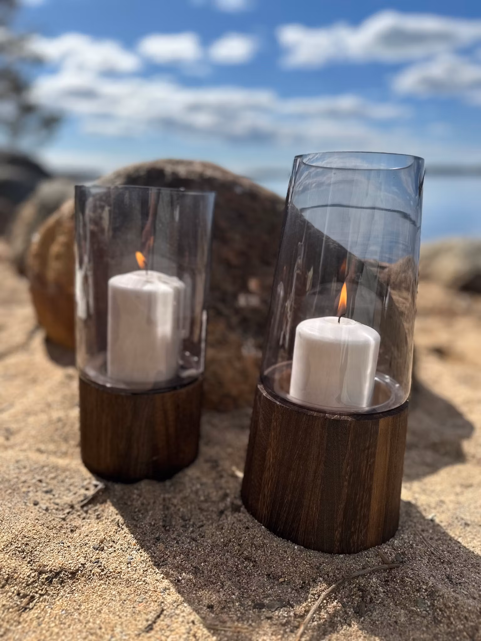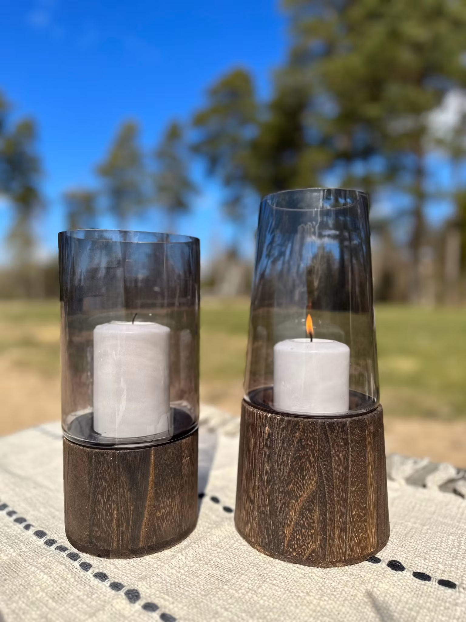 Frera Design erbjuder en vacker ljuslykta som passar utmärkt till din uteplats. Lykta Stenkälla Rak är en maffig vas som är tillverkad av trä och smoke-glas. Med sitt mörka trä och smakfulla glas skapar den en magisk atmosfär, oavsett om du använder den som lykta eller vas för hållbara buketter. Lykta Stenkälla Rak är 38 cm hög och har en färg som är en mix av valnöt och smoke. Dessutom är den tillverkad av miljövänliga material som är hållbart och kommer att hålla länge.