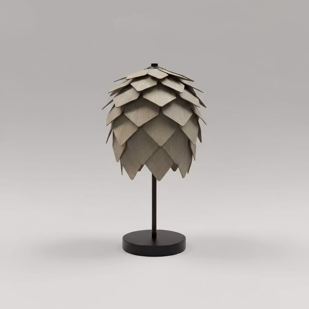 Denna underbara lampa är gjord av trälameller med en form som kan liknas med en kotte, vi har döpt den till skogsgläntan då ljuset skimrar ut fint vid lamellerna likt en skogsglänta.