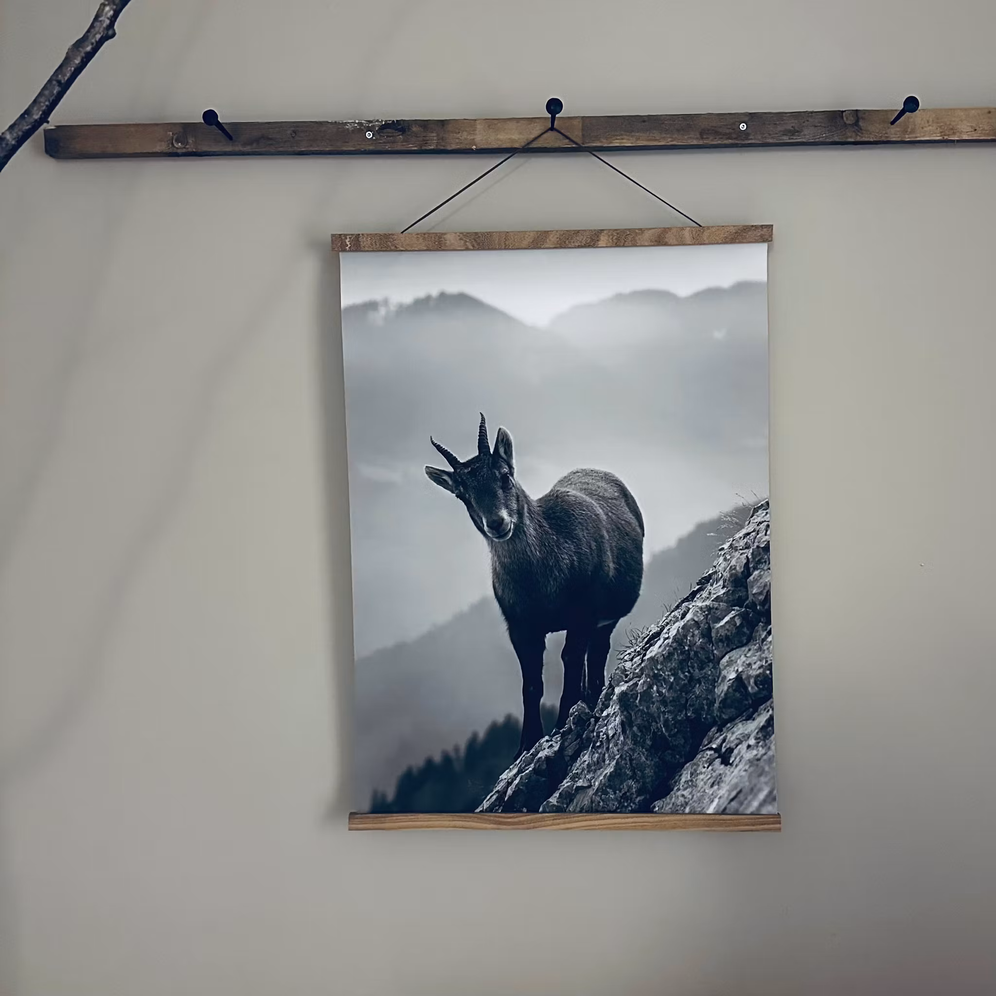 Canvasposters med hänganordning i trä och djurmotiv i svartvitt ett stilrent och mångsidigt val för modern inredning. De kombinerar tidlös design med naturens skönhet, vilket gör dem till en populär inredningsdetalj.