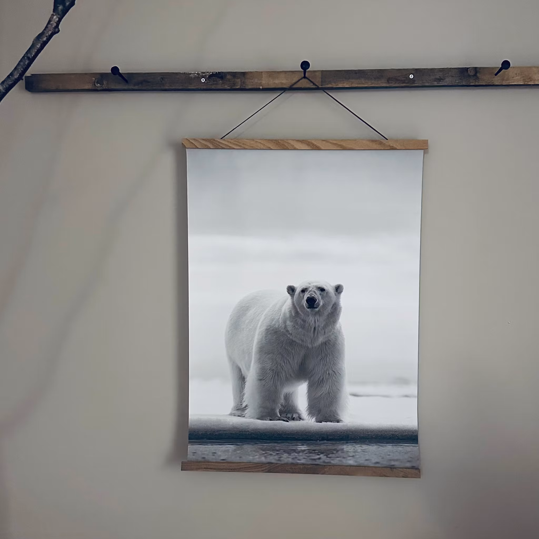 Canvasposters med hänganordning i trä och djurmotiv i svartvitt ett stilrent och mångsidigt val för modern inredning. De kombinerar tidlös design med naturens skönhet, vilket gör dem till en populär inredningsdetalj.
