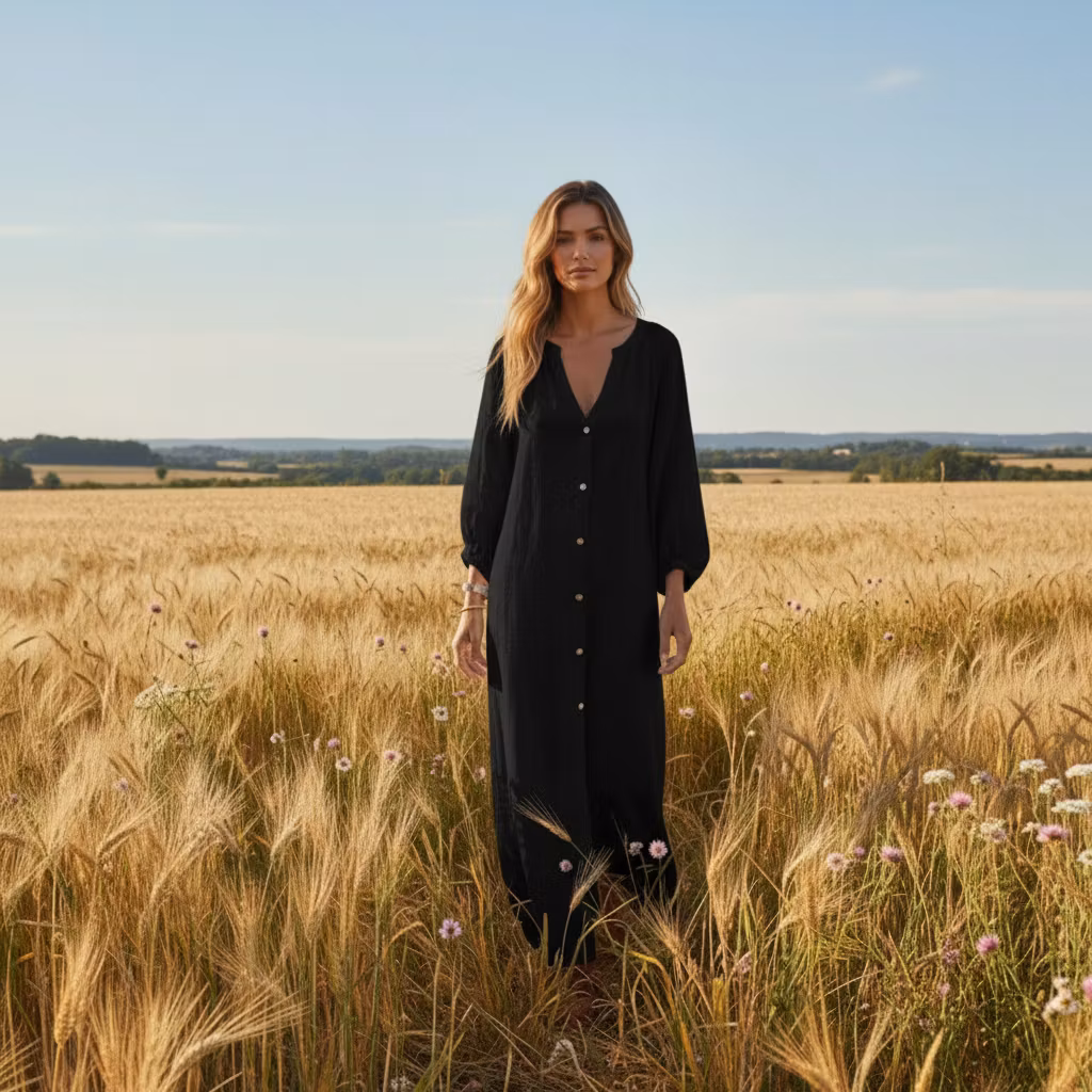 Klänning Svala är den perfekta klänningen för varma dagar när du vill känna dig både bekväm och stilfull. Den är designad i ett lätt och luftigt material som gör den sval och skön att bära, oavsett om du är på språng eller njuter av en solig dag.