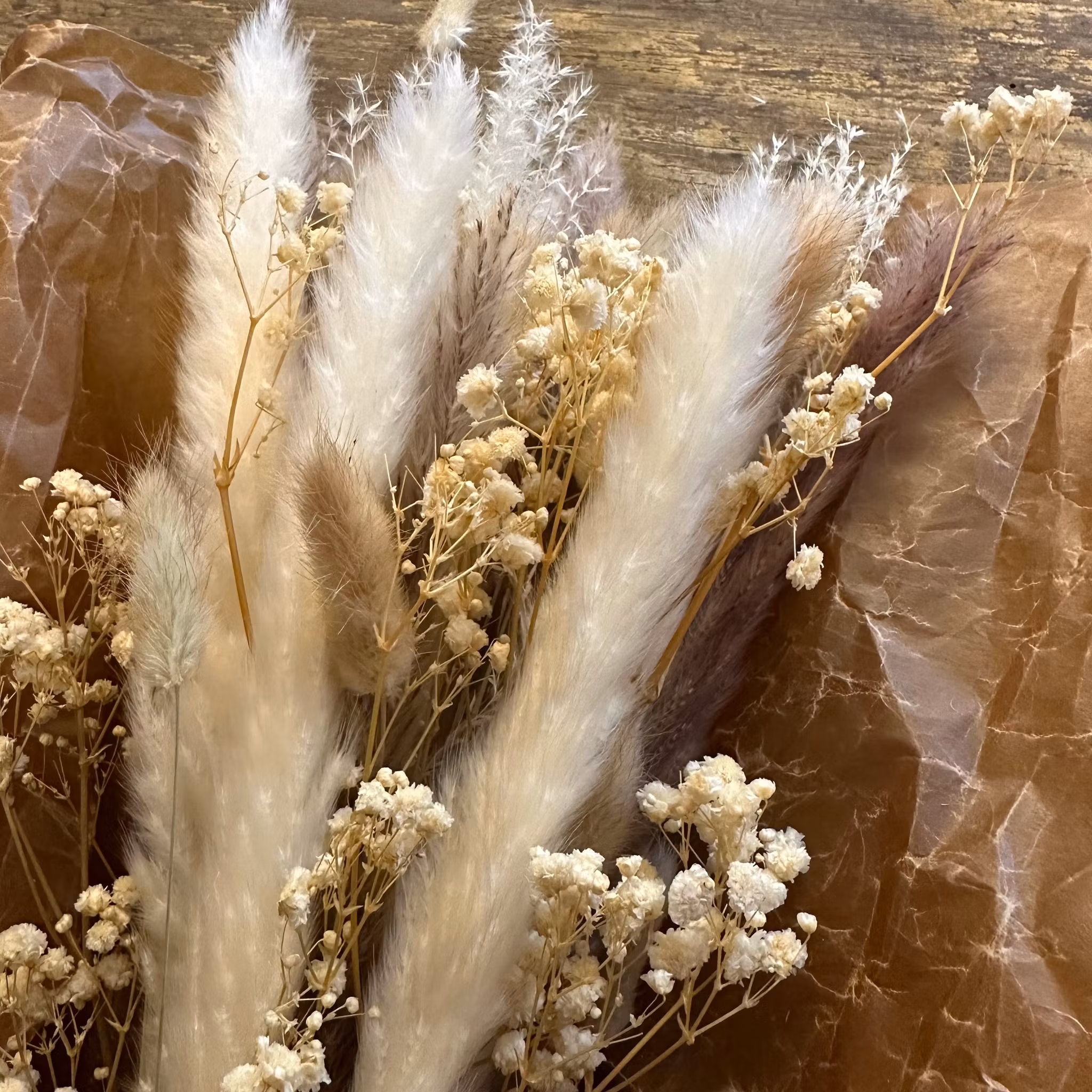 Färg: Pampas i natur och vit, brudslöja, rabbit tail