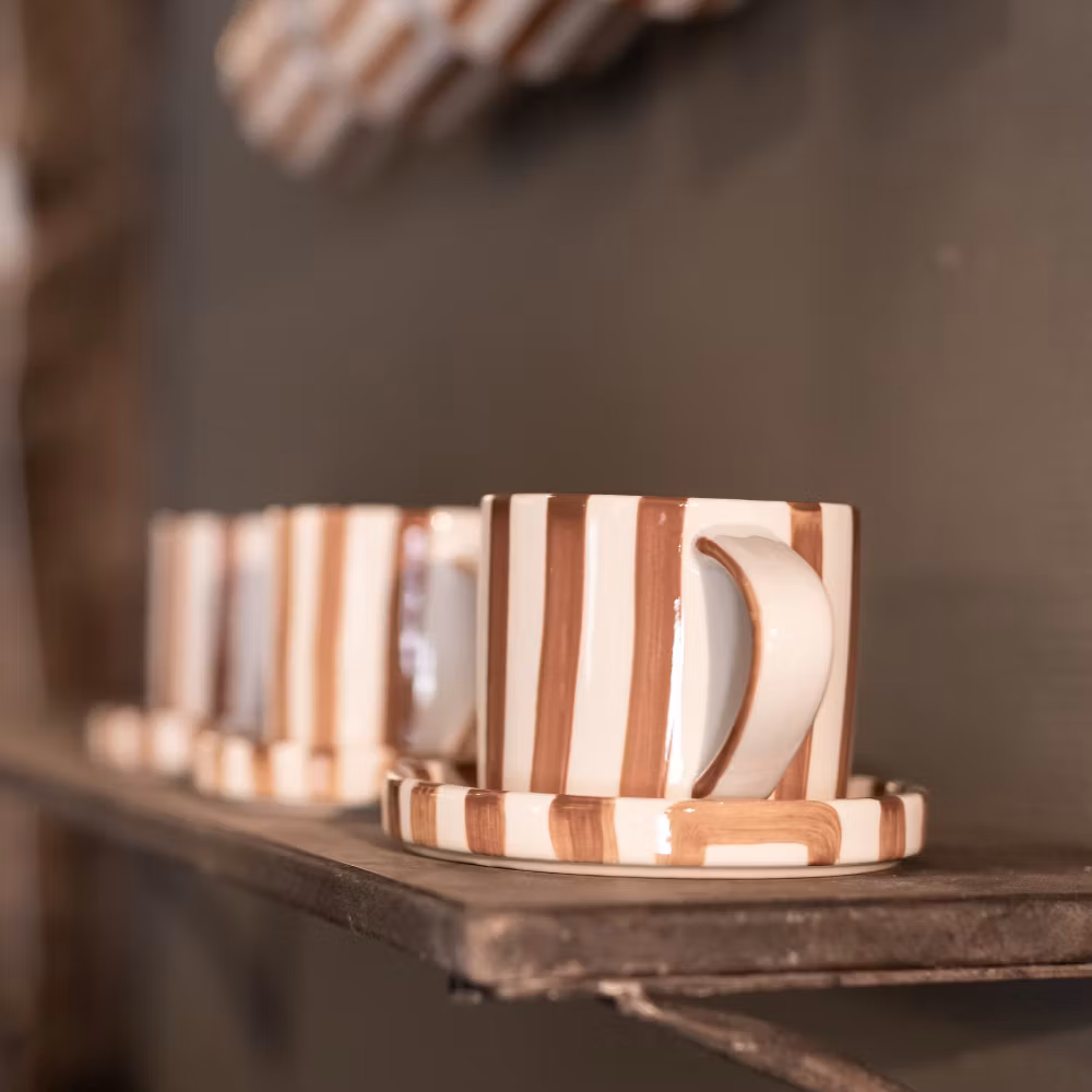Mått: Kopp; 8,7 diameter och 7,2cm hög, Fat: 12,7 i diameter och 1,7cm hög kant Asiette: Diameter: 18,7 Höjd: 1,7