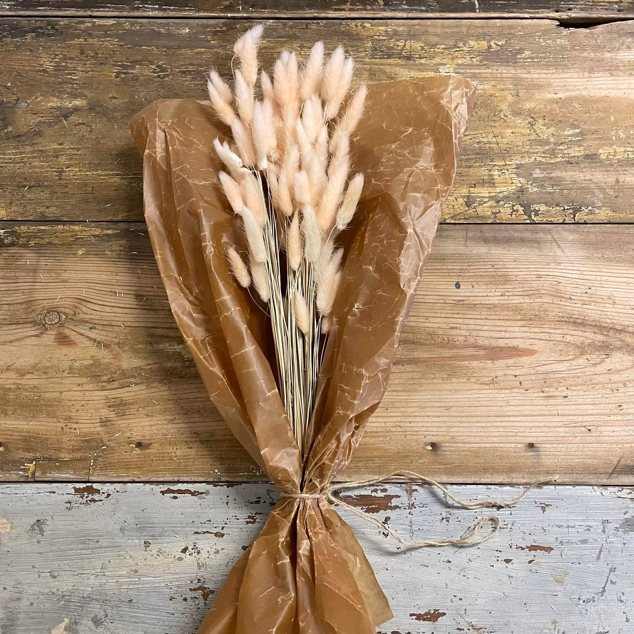 Lagurus naturell (hartass/harsvans) är en ljuvlig blomma med sammetsliknande textur. Sätt lagurusen i en vas, gärna med smal öppning, och ha den som inredningsdetalj! Passar även utmärkt i blomsterarrangemang och buketter tillsammans med andra torkade växter och blad. Ger en mjuk och härlig känsla till ditt rum.
