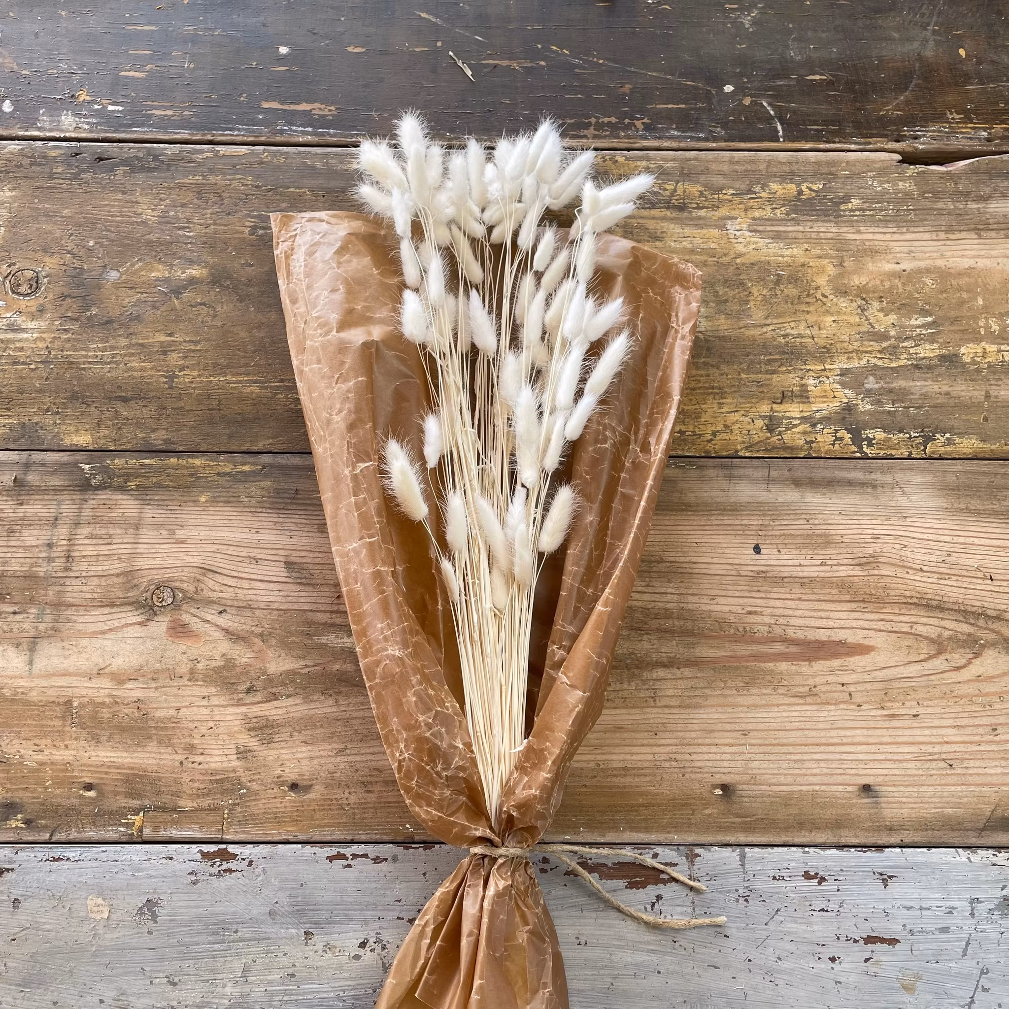 Lagurus naturell (hartass/harsvans) är en ljuvlig blomma med sammetsliknande textur. Sätt lagurusen i en vas, gärna med smal öppning, och ha den som inredningsdetalj! Passar även utmärkt i blomsterarrangemang och buketter tillsammans med andra torkade växter och blad. Ger en mjuk och härlig känsla till ditt rum.