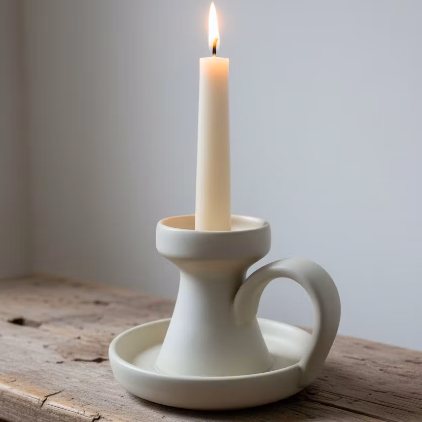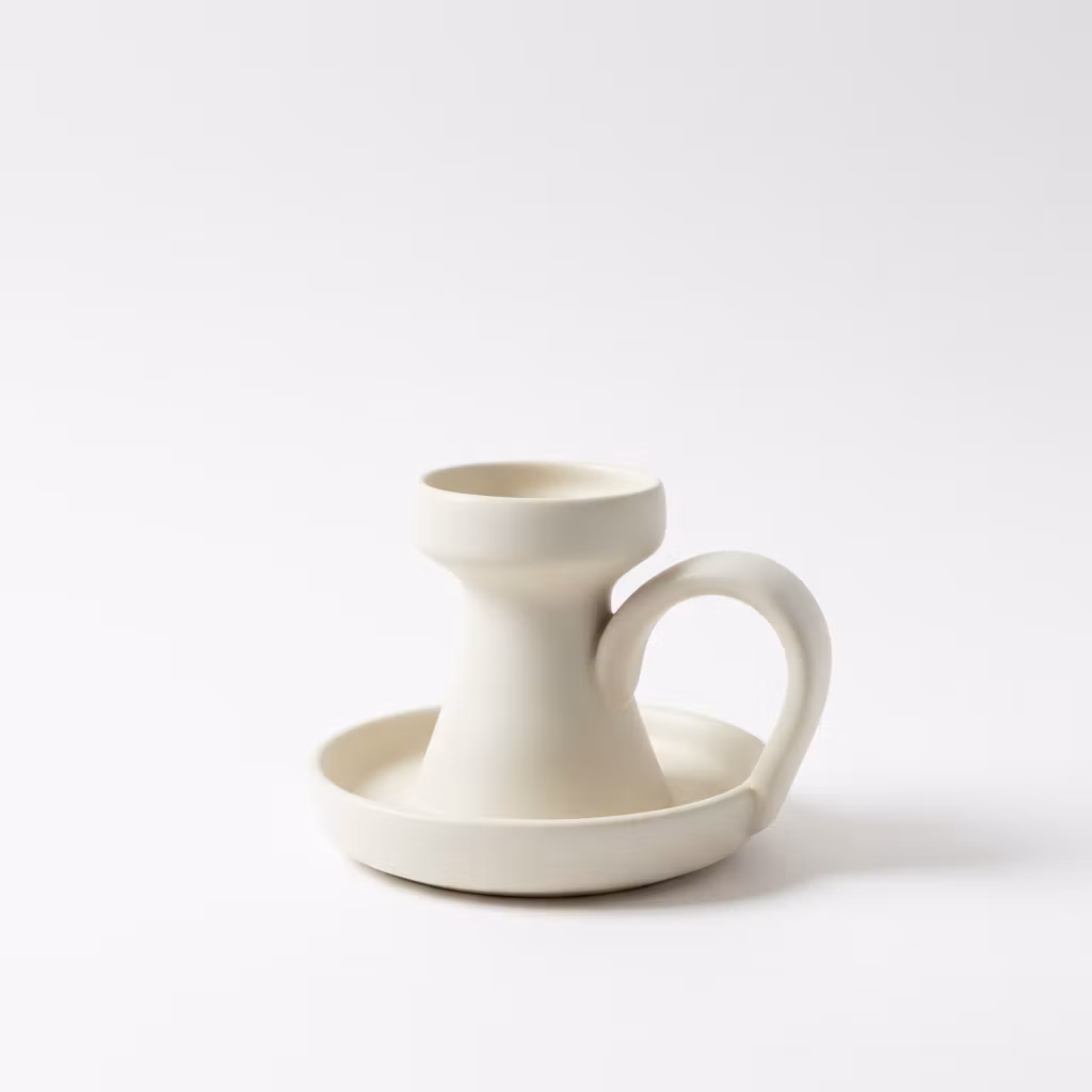 Ljusstake Myrdala i beige ton är en vacker keramikdetalj från vårt eget sortiment.