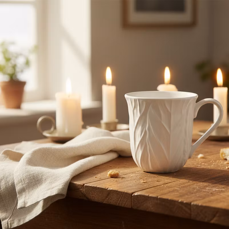 Muggen Blad är en del av Freras naturinspirerade serie med fokus på lugn, form och vardaglig skönhet. Det mjuka bladmönstret ger muggen ett levande men harmoniskt uttryck som passar lika bra till morgonkaffet som till eftermiddagsteet. Med sin tidlösa design blir muggen Blad ett självklart inslag i köket – både ensam och tillsammans med andra delar i serien. En mugg som skapas för att användas varje dag, men som också är vacker att stå framme.
