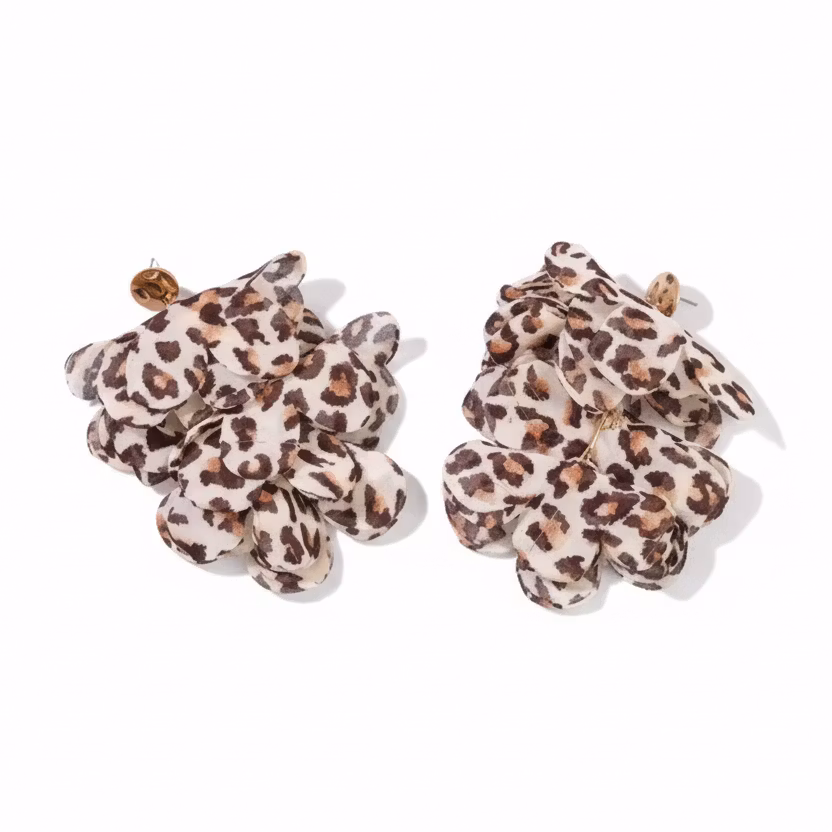 Låt din stil tala med dessa unika örhängen i tyll med leopardmönster – en perfekt kombination av elegans och attityd. De luftiga lagren av tyll ger en lätt och svävande känsla, medan det klassiska leopardmönstret tillför en trendig och självsäker touch.