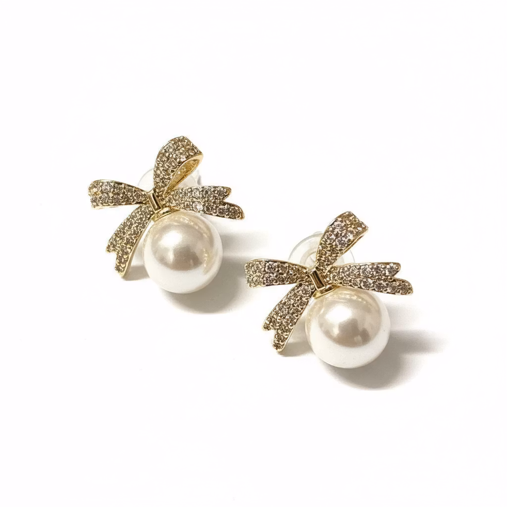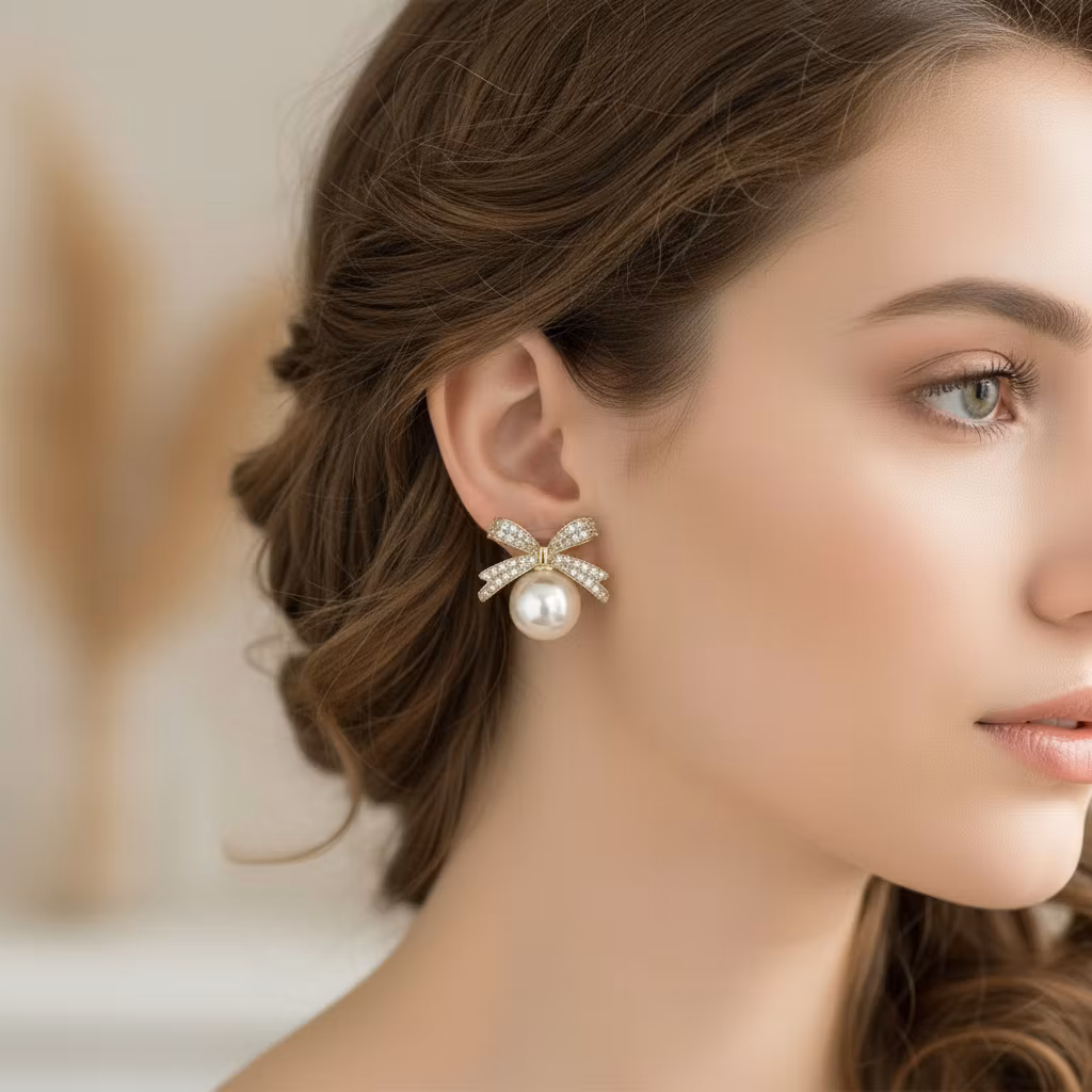 Dessa söta & fina rosettörhängen med pärla fångar balansen mellan lekfullhet och sofistikerad stil.