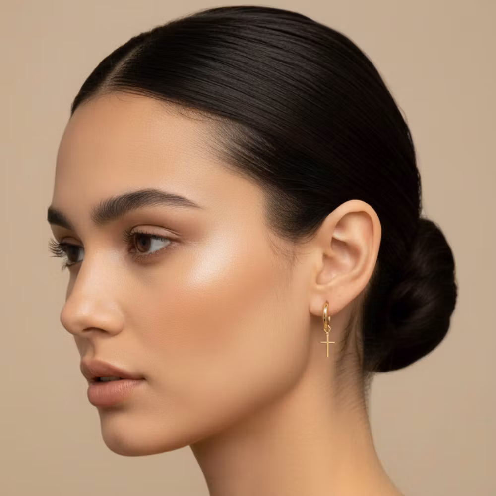 Faith Hoops är eleganta och tidlösa örhängen med en stilren hoop-ring och ett hängande kors – en perfekt kombination av modern design och klassisk symbolik.
