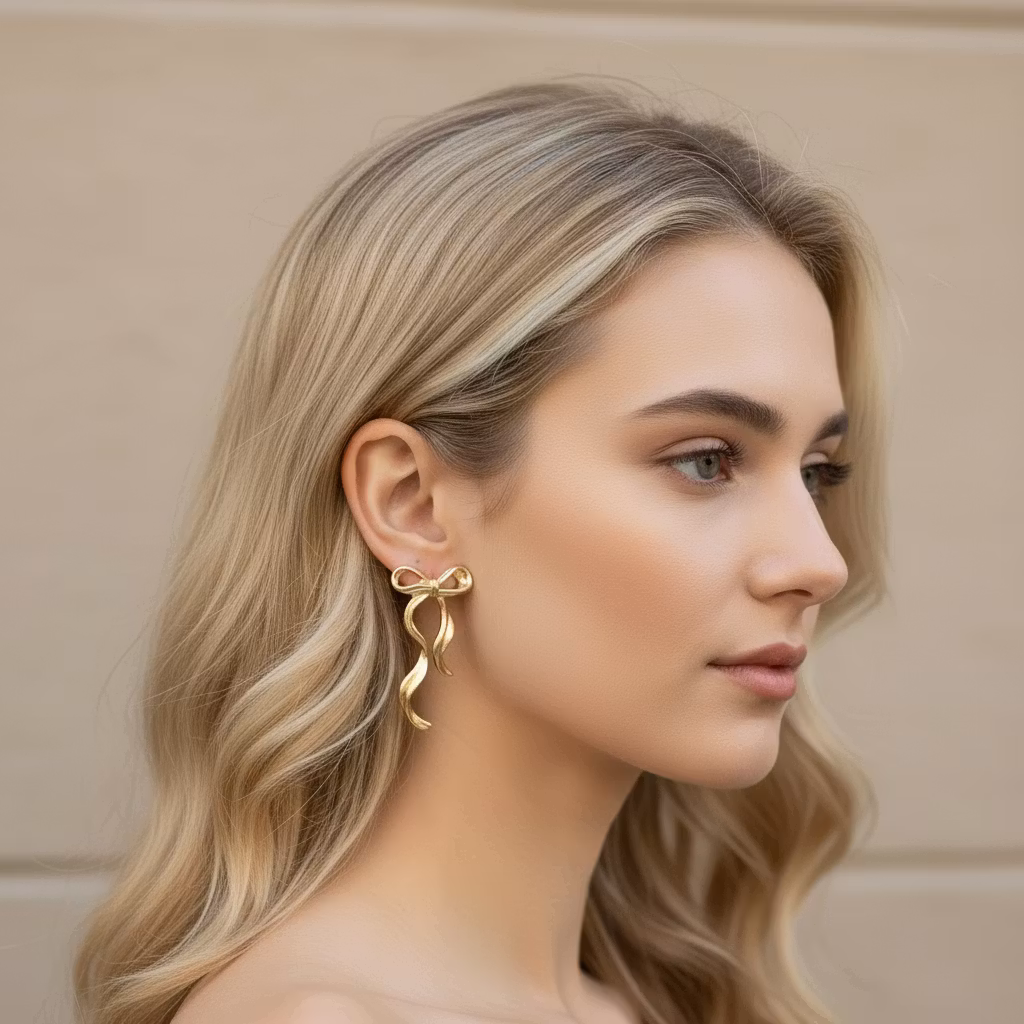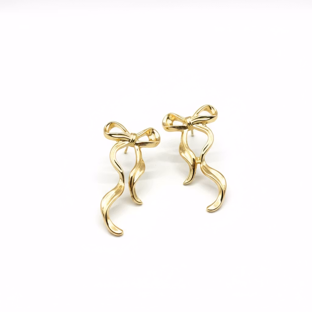 Golden Bow är ett par stilrena örhängen formade som små rosetter – en tidlös symbol för femininitet och charm.