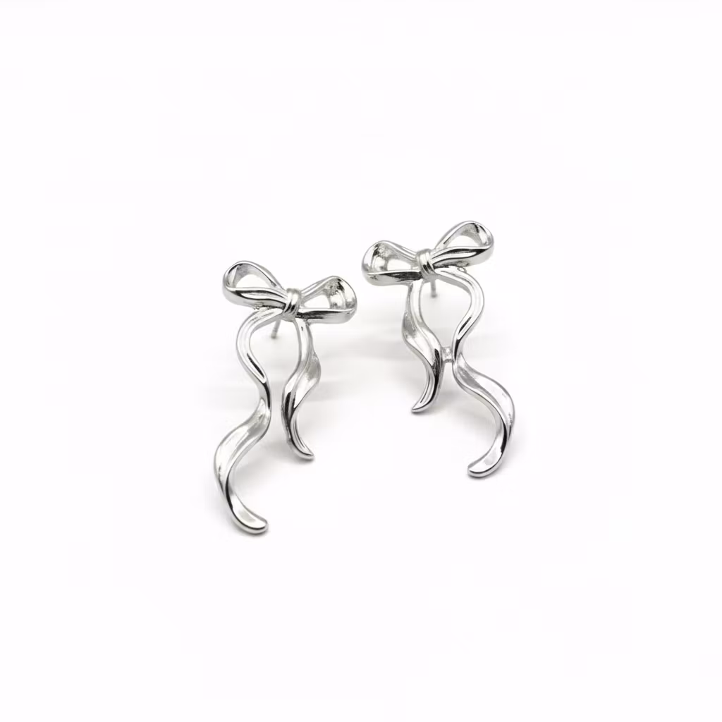 Fancy Silver Bow är ett par stilrena örhängen formade som små rosetter – en tidlös symbol för femininitet och charm.