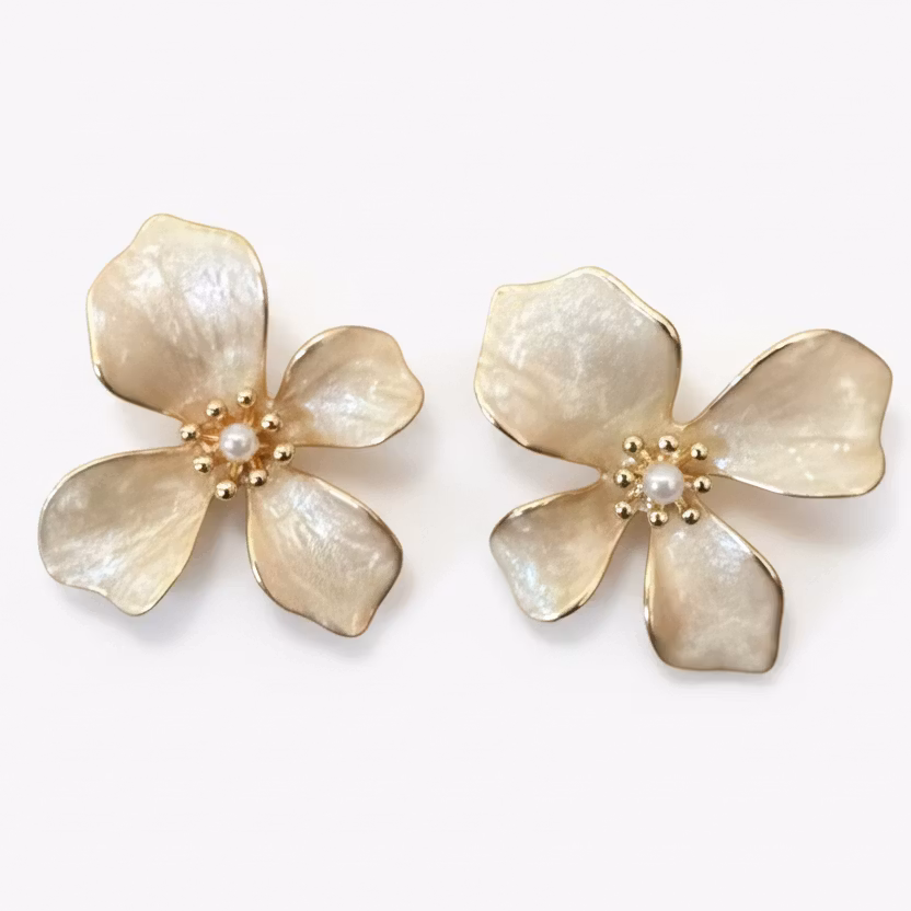 Örhängena pryds av en utsökt formad blomma, vars mjukt välvda kronblad ger ett feminint och graciöst uttryck.