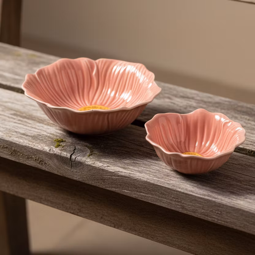Upptäck Skål Blomma i rosa, en dekorativ och charmig skål i form av en blomma. Den mjuka rosa färgen ger ett lekfullt och elegant uttryck som passar perfekt i köket, på bordet eller som en vacker inredningsdetalj.