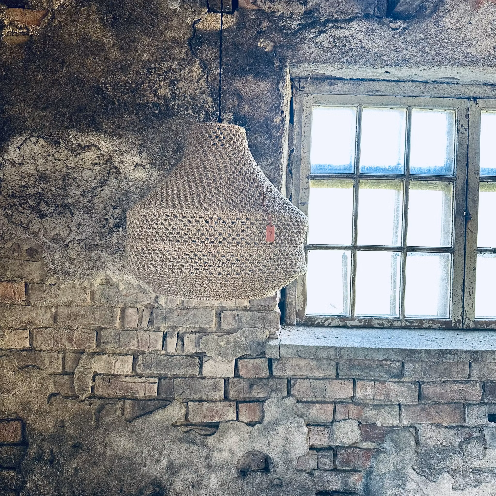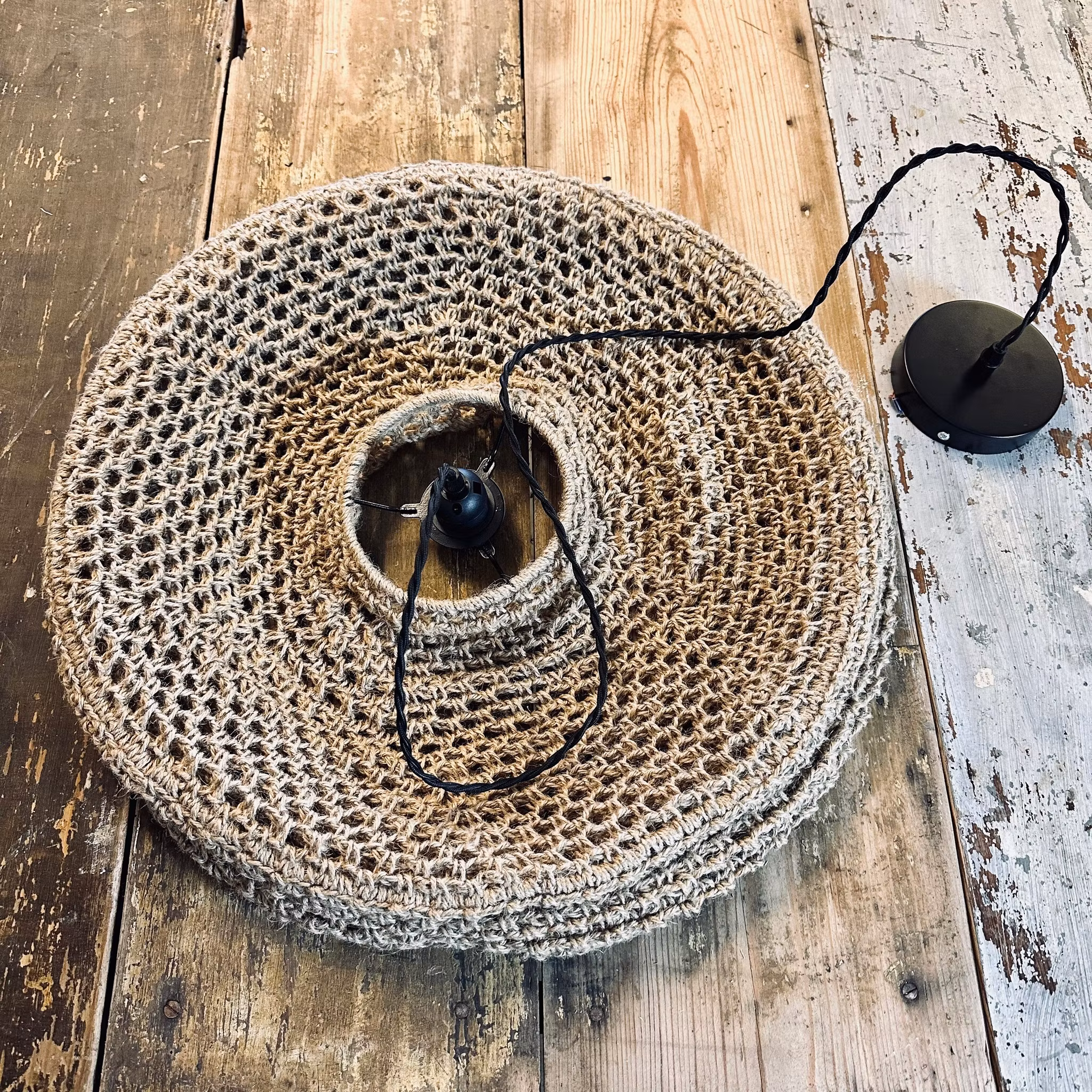 Denna underbara lampa är gjord av 100% jute och handknuten.